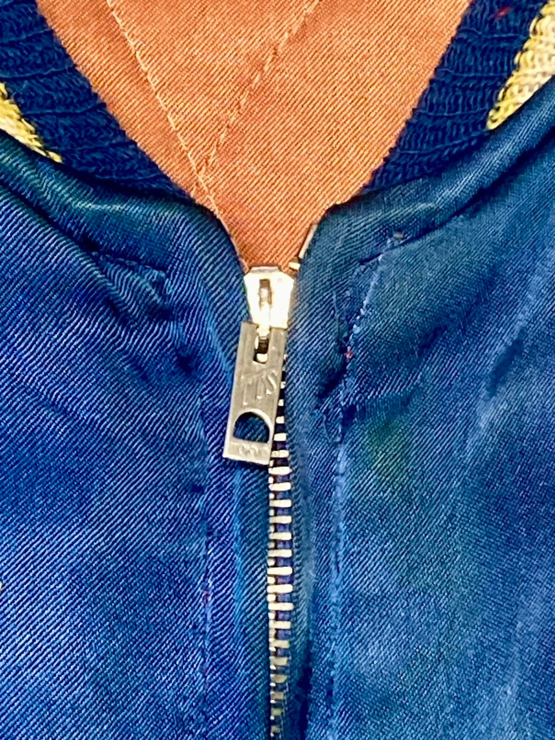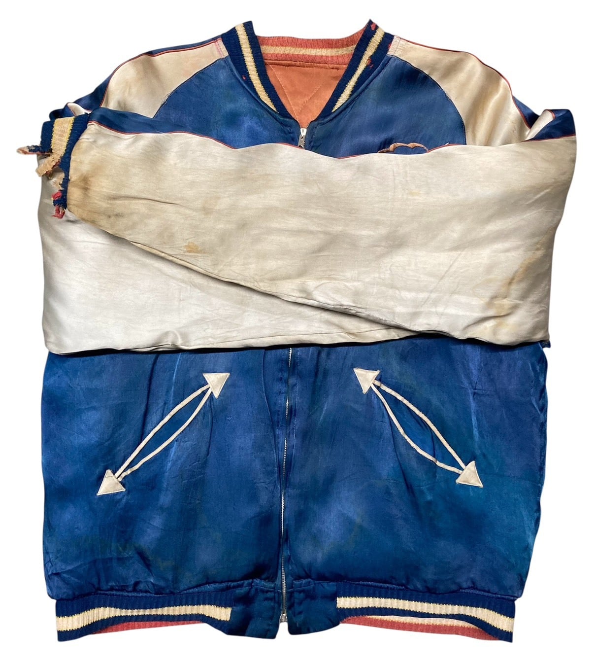 襟元、両袖先、裾リブに伸び、ダメージあり。