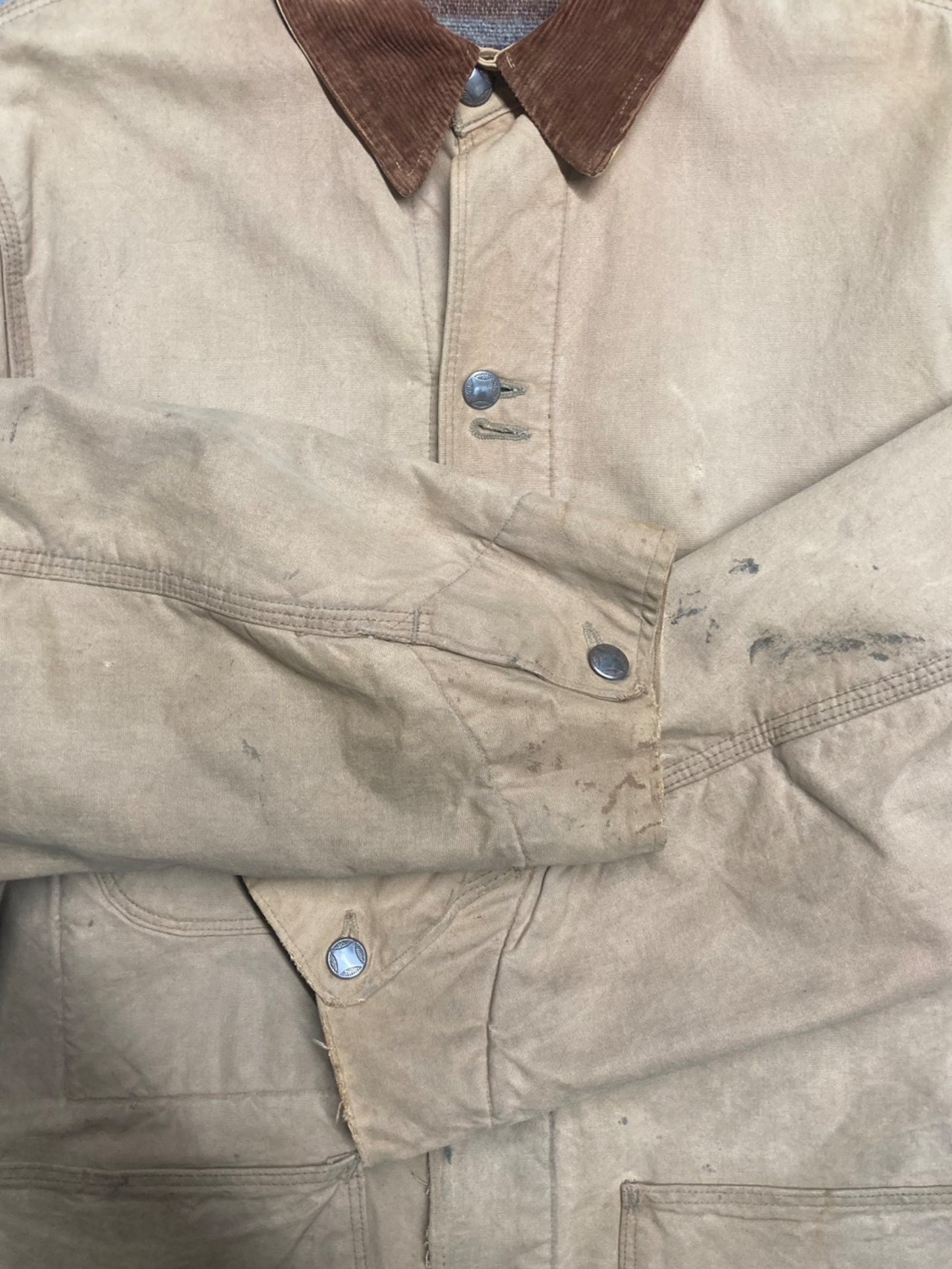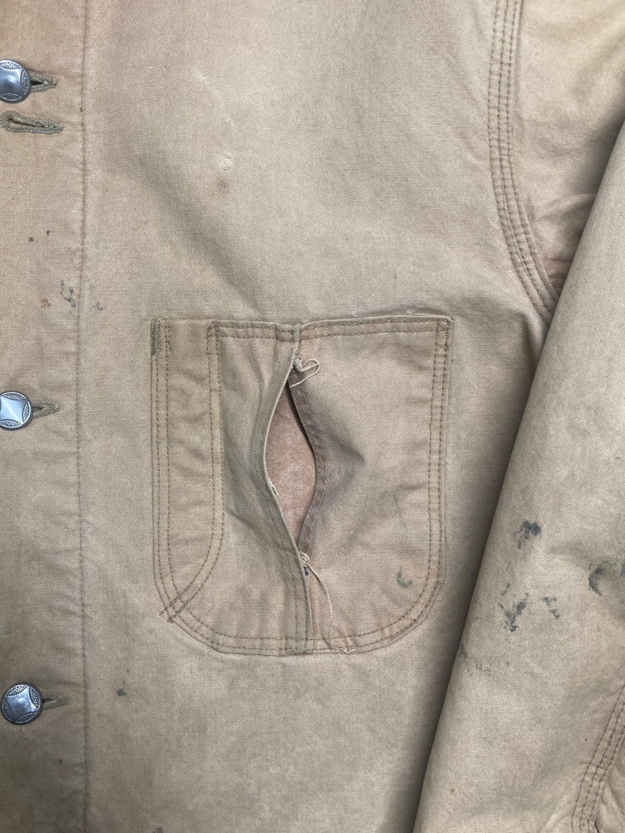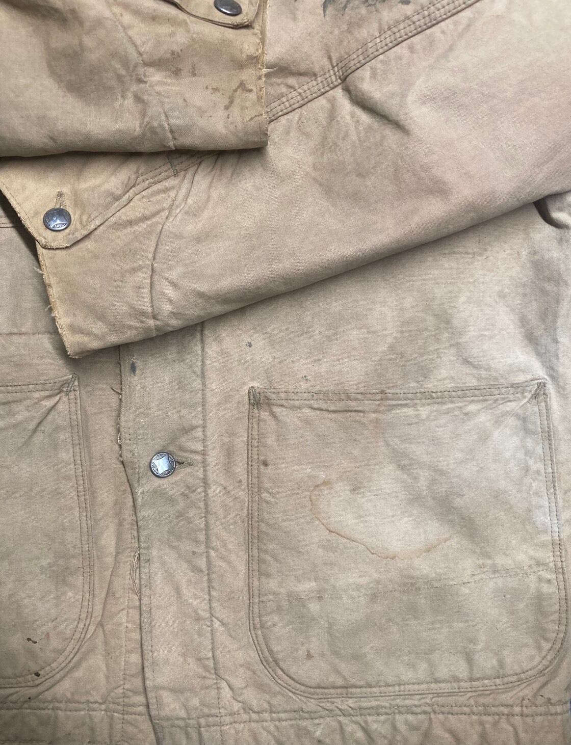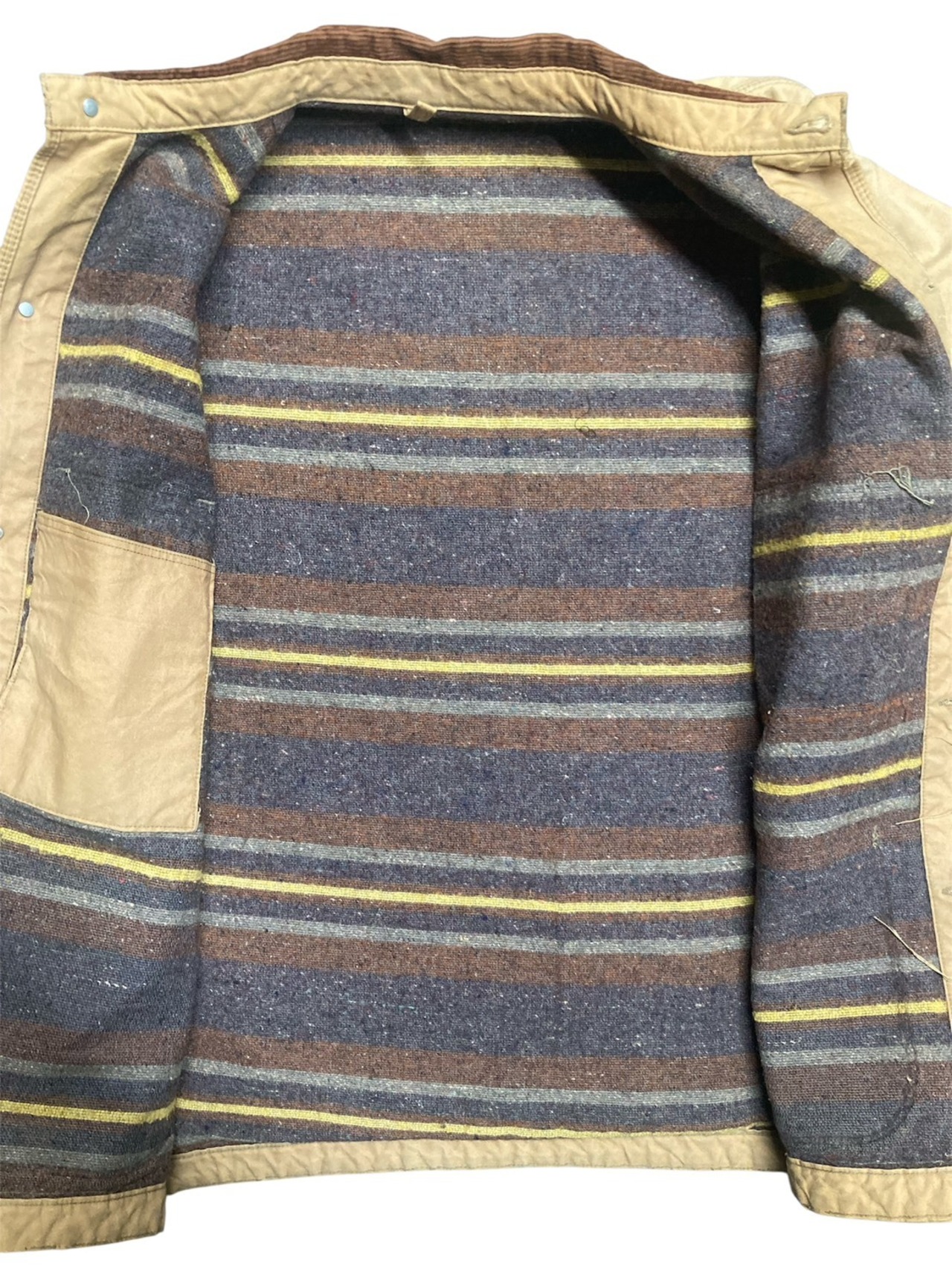1960年代のアメリカンヴィンテージ、タグが紛失しているのでブランドは不明です。ボディには丈夫なブラウンダック生地が使用され、耐久性とともに重厚感を醸し出しています。加えて、特長的なブランケットが付属しており、温かさと実用性を兼ね備えています。